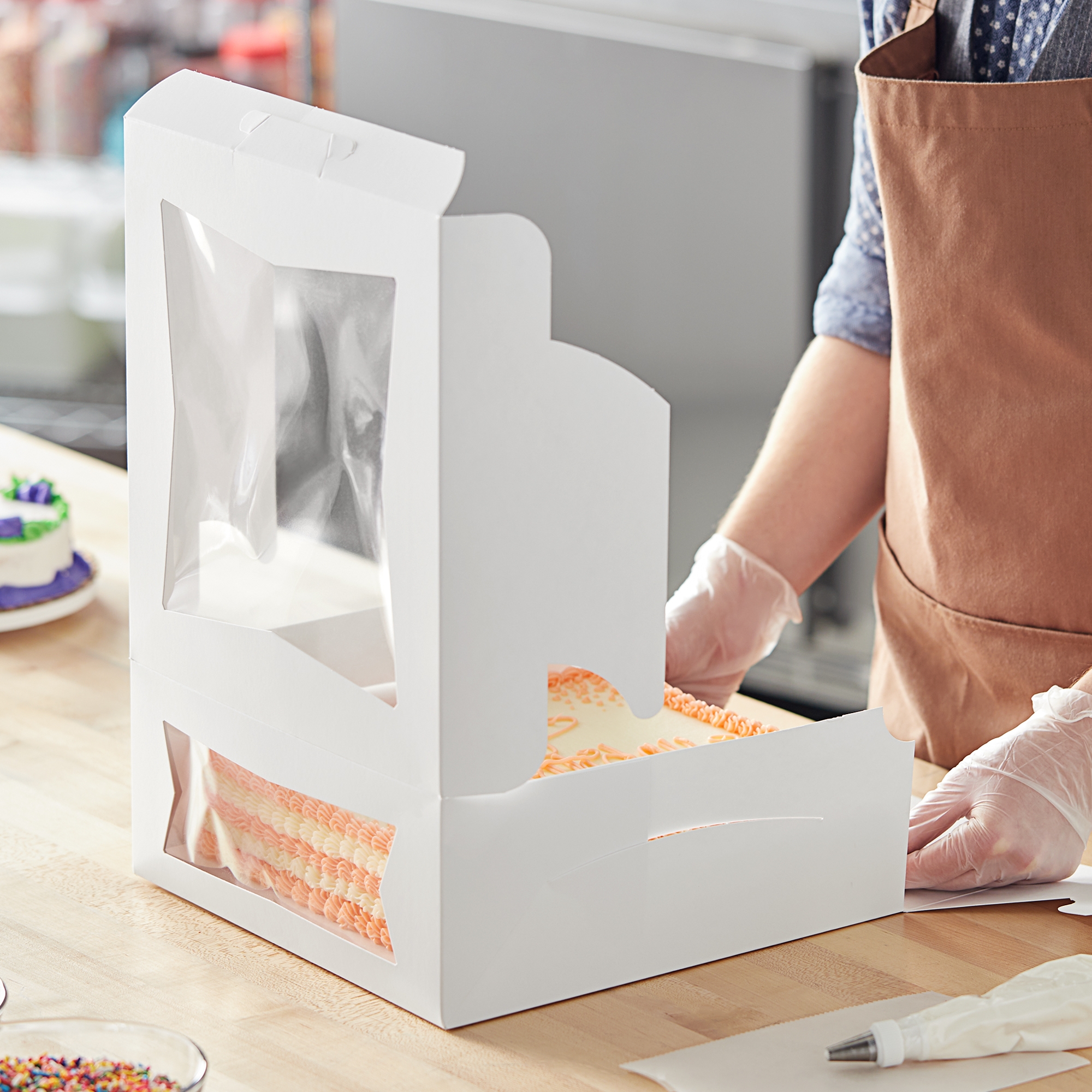 “These cake boxes are perfect! Sturdy, easy to assemble, and the clear window adds a nice touch for displaying cakes. The size is just right for standard cakes, and they hold up well during transport. Great quality for the price—I’ll definitely be ordering more!”