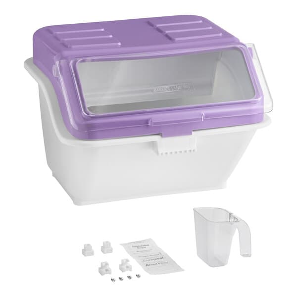 - Holds approximately 60 lb. of flour or 89 lb. of sugar