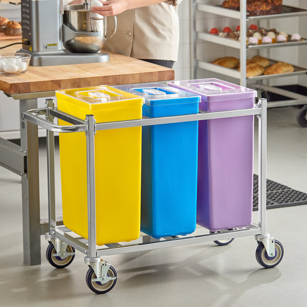30 Gallon / 480 Cup Mobile Triple Ingredient Bin - Yellow / Blue / Purple