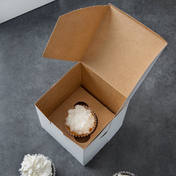 4 1/2" x 4 1/2" x 4 1/2" White Cupcake / Muffin Box with 1 Slot Reversible Insert - 10/Pack